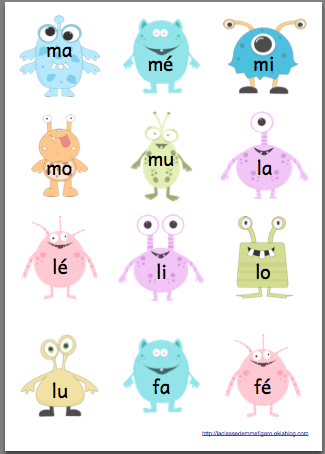 Voici un petit jeu de lecture inspiré par l'activité "swat a sound" découvert sur le blog Mrs Ricca's Kindergarden et l'album "Comment ratatiner les monstres" de Catherine Leblanc et Roland...