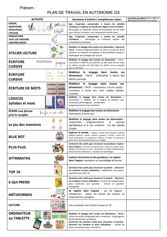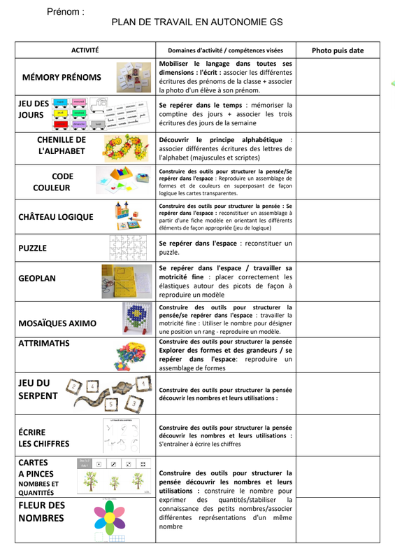 Pour gérer le travail en autonomie , je compte mettre en place un système de plan de travail. Au démarrage je comptais faire un plan individuel (page 1 du doc) mais je pense que ce sera difficile...